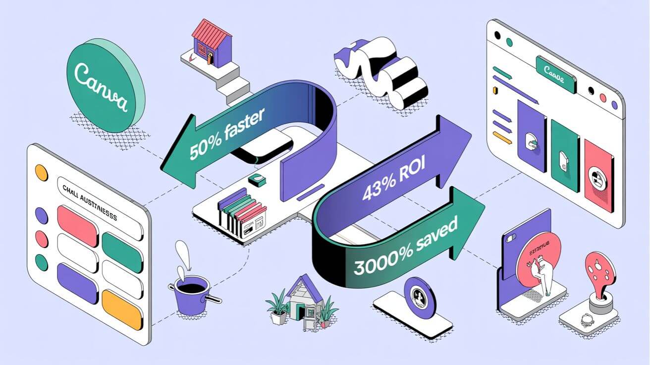 - • Efficiency unlocked: Canva AI can reduce design time by up to 50% and save $300,000+ in annual costs. It eliminates repetitive tasks, enabling creative teams to focus on campaigns, innovation, and brand storytelling.