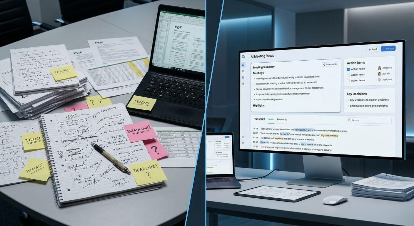 Writing up notes, checking what was agreed, assigning next steps, and sending follow-up emails can easily add another 20 to 30 minutes to a one-hour meeting. Across a team, that turns into hours of admin every week.