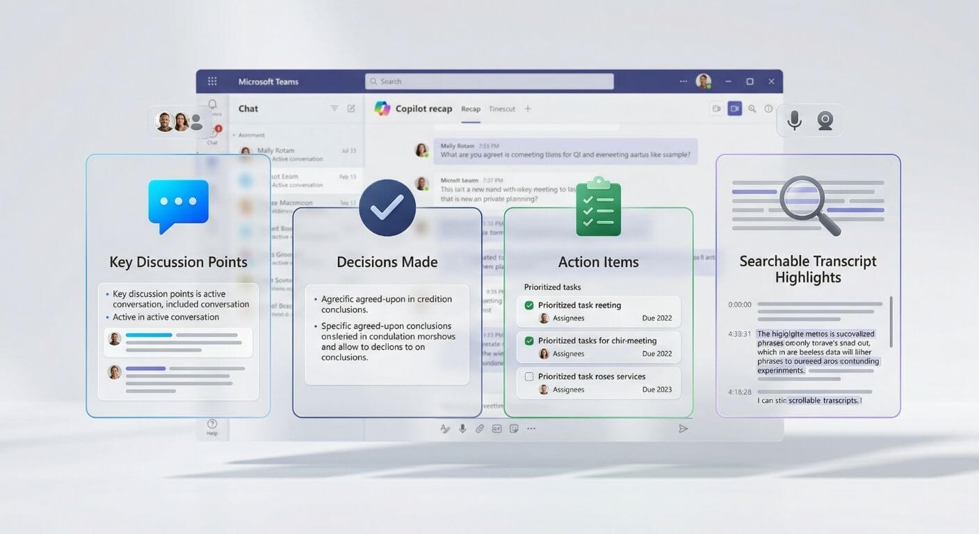 TL;DR: If transcription is enabled, Copilot in Teams can create a recap with summary, key discussion points, decisions, action items and transcript highlights. The recap appears in the meeting's Recap tab and can be used to draft follow-up emails, update Planner or To Do, and help absent attendees catch up quickly.