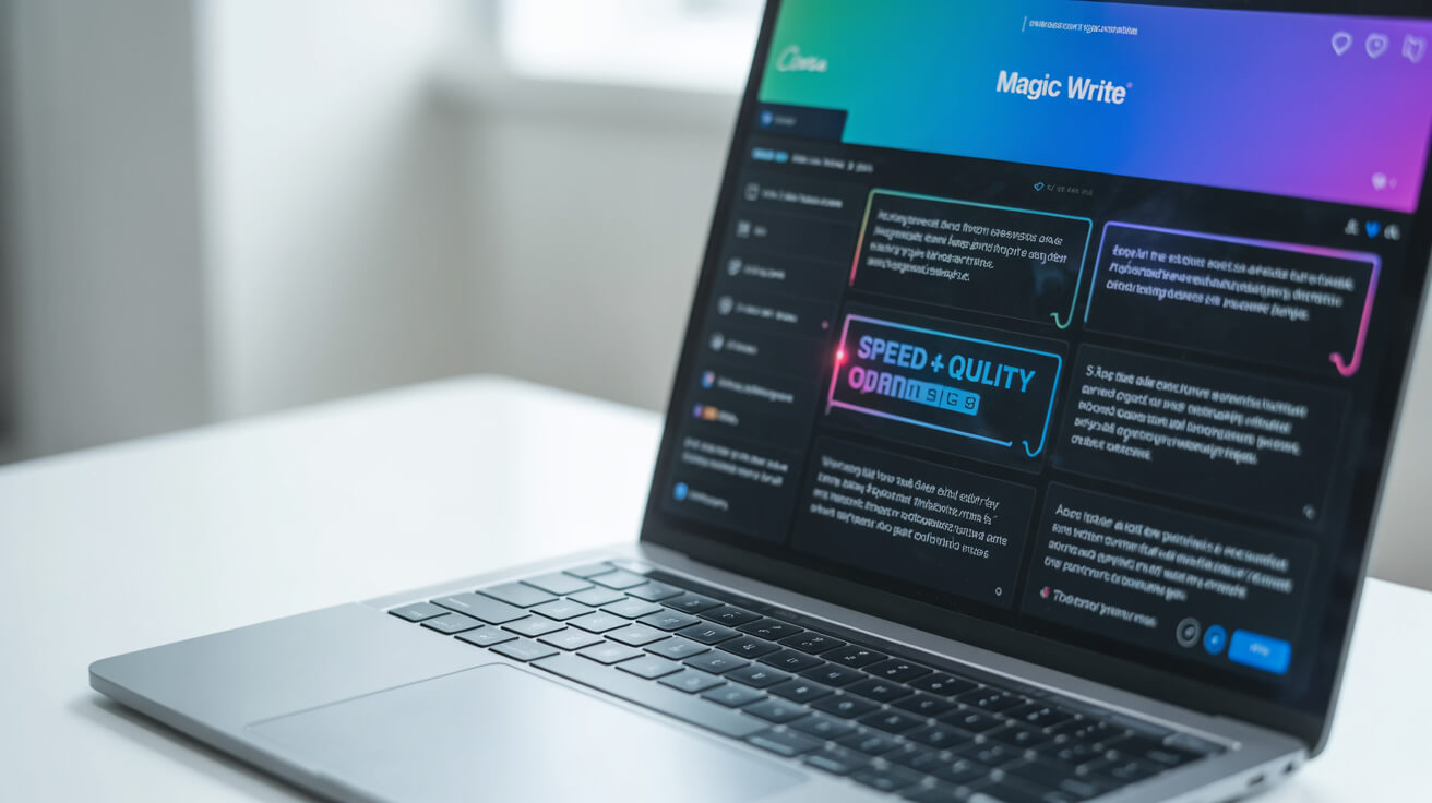 Magic Write sits inside the editor, so copy and design stay in one flow. This reduces switching and helps teams keep assets on brand. See the AI assistant overview.